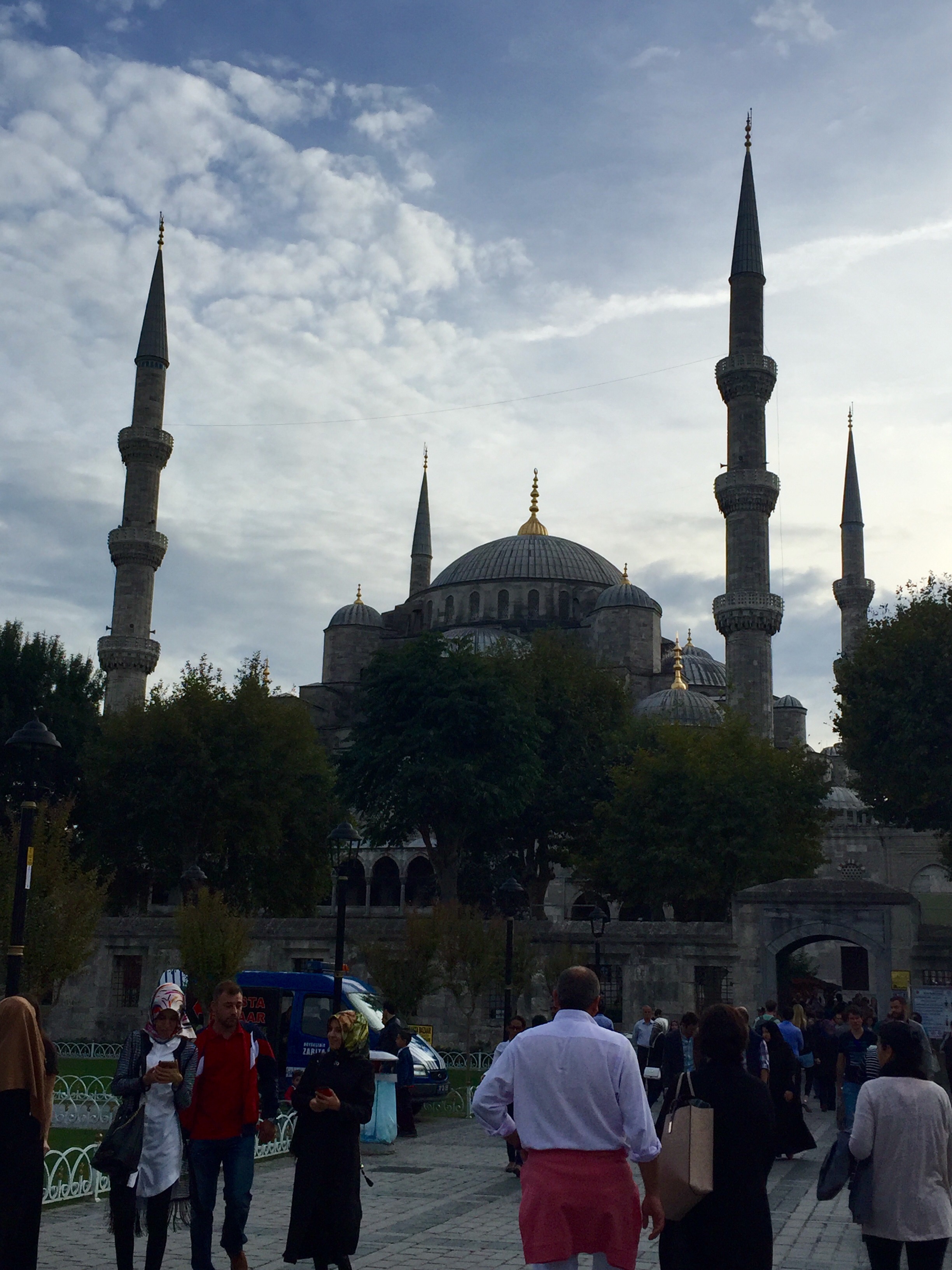 Because it is a place of worship, appropriate dress is a must. Men should wear long pants, and women should wear long sleeves, pants or a a skirt coming to their ankles, and a scarf over their head. It’s honestly pretty easy to make sure you’re dressed appropriately. Because the Sultan Ahmet is used to thousands and thousands of visitors, they’re not going to be massively strict about whether your hairline is poking out from under your scarf, but it is important to be respectful and comply with the dress requirements. I wore jeans and a loose t-shirt with a light summer scarf around my neck for the day, and when we went into the mosque threw my jean jacket on and pulled the scarf over my head. Personally, I always feel much more comfortable being prepared and appropriate for local customs whenever I travel abroad, but if you forget or don’t want to carry a scarf with you, there are attendants at the entrance of the mosque who can provide one for you to wear while inside. Both women and men will also be required to take your shoes off before entering the mosque, and they will provide plastic bags for you to hold them in. Entrance to the mosque is free, but they do have a donation box, and it is a nice gesture to throw a few lira into it. The money is used to maintain the mosque and keep it open to visitors.